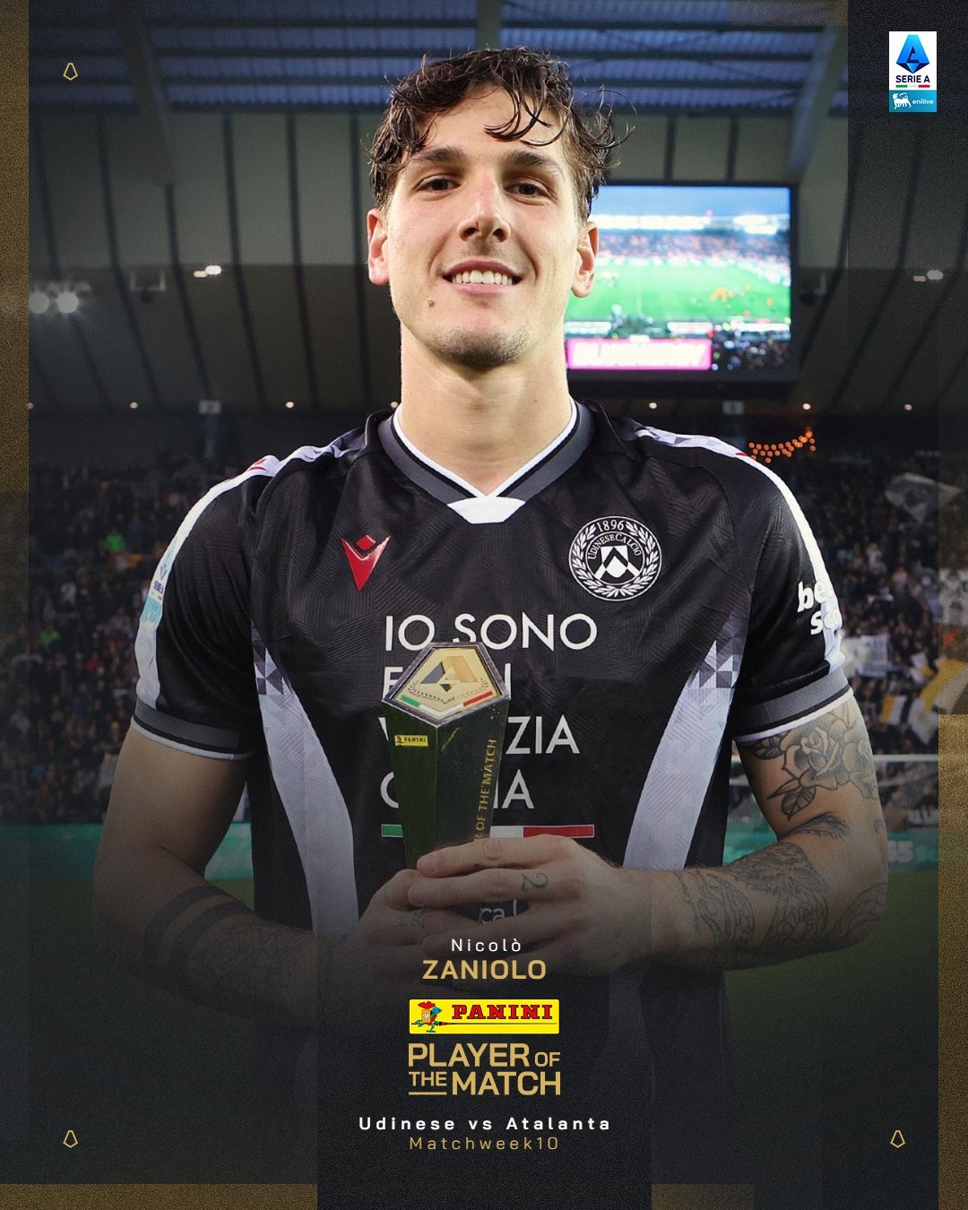 打进唯一进球助乌迪内斯击败亚特兰大,扎尼奥洛当选全场最佳